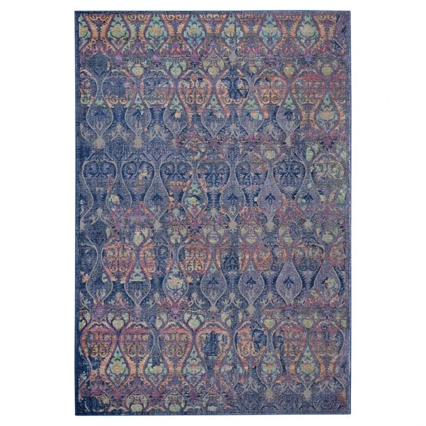 Exotic all-over design and silky sheen imbue the Ankara Global rug with an authentic vintage appeal. Graceful repeating vase patterns in beautifully ombered blue, orange and green bring an extra energy and intrigue to any room.