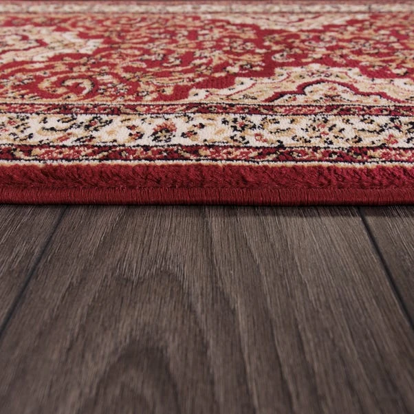 This is a hard-wearing machine-made runner. When opening, re-roll your rug pile out and leave in a warm room for 24 hours before putting in place, this will help to reduce wrinkles and curling from packing. A small amount of fibre loss is normal on a new rug. Do not pull any loose threads, please cut them carefully with scissors to remove. Avoid prolonged exposure to direct sunlight as this may cause fading of the colour. Turn your rug regularly to ensure even wear and reduce pressure marks from furniture. Before using any cleaning products on your rug, test on an inconspicuous area first to ensure it does not affect the colour. Clean spills immediately by blotting with a clean dry white cloth – do not rub as this may stain the fibres. Vacuum your rug regularly to remove everyday dirt, we recommend the use of a suction type vacuum cleaner as a rotating vacuum brush can cause damage to the pile surface. We recommend the use of an anti-slip mat beneath your rug to prevent it from slipping and sliding out of place. Latex is used on the back of this rug. Please do not leave babies or young children unsupervised on this rug.