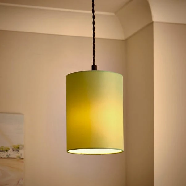 The perfect shade for a contemporary space, the Ava Bottle Green Cylinder Shade features a timeless design suitable for a range of home interior styles. This Drum Shade is made from high quality polycotton fabric and is available in three sizes. Suitable to use as a ceiling pendant or a table lamp shade.