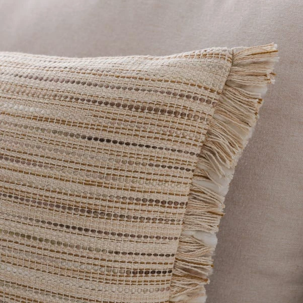 Designed with a soft flatweave fabric and finished with delicate fringe edges, this cushion brings a relaxed, cosy feel to any space. The removable cover with a zip fastening makes it easy to keep fresh, while the beautifully blended colours add a subtle, sophisticated touch.