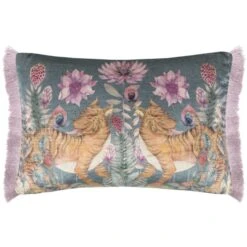 The Baghdev Velvet Rectangle Cushion showcases a modern animal design, digitally printed for accuracy. Filled with duck feathers, this UK-crafted cushion offers a soft velvet cover and a practical zip closure for easy care.