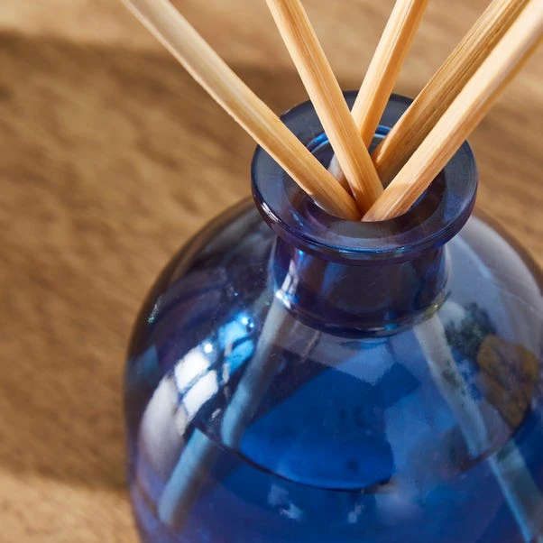 Add a splash of colour and fresh, floral scent to your home with this vibrant blue glass diffuser, designed to brighten any space. The uplifting fragrance blends sparkling ozonic notes with the delicate floral scent of sun-kissed beach rose, while soft pink pepper combines with sweet peony and jasmine for a truly luxurious fragrance. With six natural rattan reeds, it diffuses a refreshing aroma that lasts up to 10 weeks – perfect for adding a touch of luxury to your home.