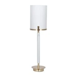 The Bella Squoval Floor Lamp combines a milky white glass squoval shade with a delicately ribbed texture and a gold metal stem. The wide cylindrical foot adds a modern touch, making it an elegant and stylish floor lamp for your living space.