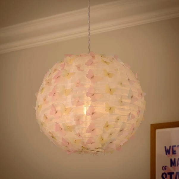 Illuminate your space with the Butterfly Applique Round Easy Fit Lamp Shade. Featuring vibrant ombre applique butterflies, it adds a playful and colourful touch to any room. Crafted from durable paper, this round lamp shade combines style with resilience. Experience effortless installation with its easy fit design – no electrician required.