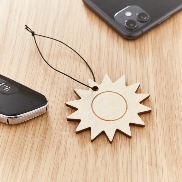 Bring a burst of sunshine to your car or living space with this Cactus Flower Wooden Sun Air Freshener. The sun-soaked blend of apricot, peach, apple and bergamot blooms into cactus flower and sunlit peony, creating a sweet and uplifting scent. Its playful sun shape adds a fun touch to your space. Reusable and easy to refresh – just add a few drops of fragrance oil to keep the scent going. Perfect for adding a little warmth wherever you go.