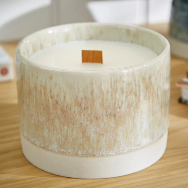 Boasting an attractive coloured glaze, this crackle candle features smooth base notes of vanilla, sandalwood, sweet praline, and coconut: all wrapped around hints of cinnamon, clove, and sweet orange, this fragrance – lifted by top notes of green birch – balances warmth and freshness.