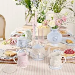 Bring a bit of Wonderland into your home with the Set of 2 Alice in Wonderland Candlestick Holders, perfect for devoted fans. Crafted from ceramic with a glossy glaze in dreamy blue and beige, each holder features enchanting illustrations.