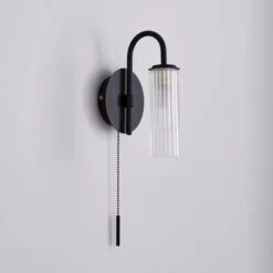 Introduce a modern contemporary element to your home with this stunning Dorma Henstone Wall Light. Beautifully designed with a clear ribbed glass shade, paired with a glamorous curved stem and base. This stunning wall light is supplied with a pull cord switch and is dimmable compatible with a suitable bulb and light switch. With an IP44 rating, this piece is suitable for any indoor rooms, including bathrooms. Matching family items are also available to help coordinate your home.