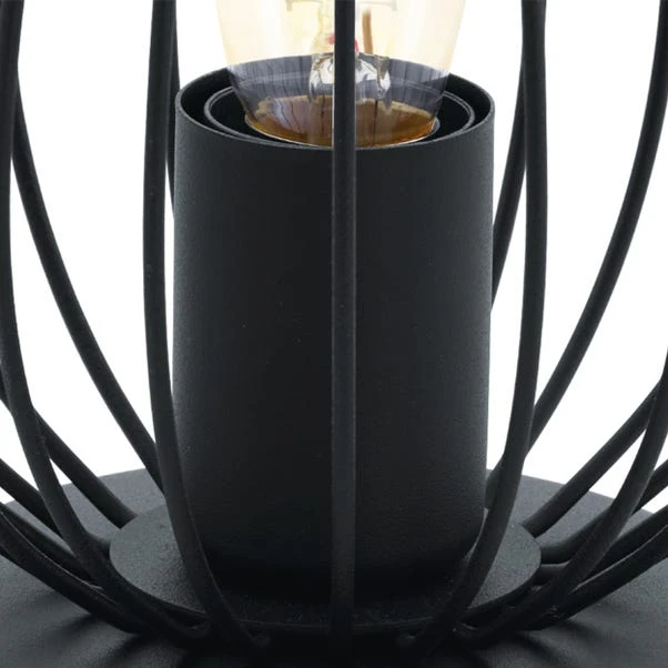 Add a stylish flair to your home with EGLO’s Newtown Mid Century Industrial Table Lamp. Featuring an oval black wire lampshade paired with a round black metal base that creates a fascinating play of light and shadow, this vintage-inspired lamp would be a beautiful accent to any interior.