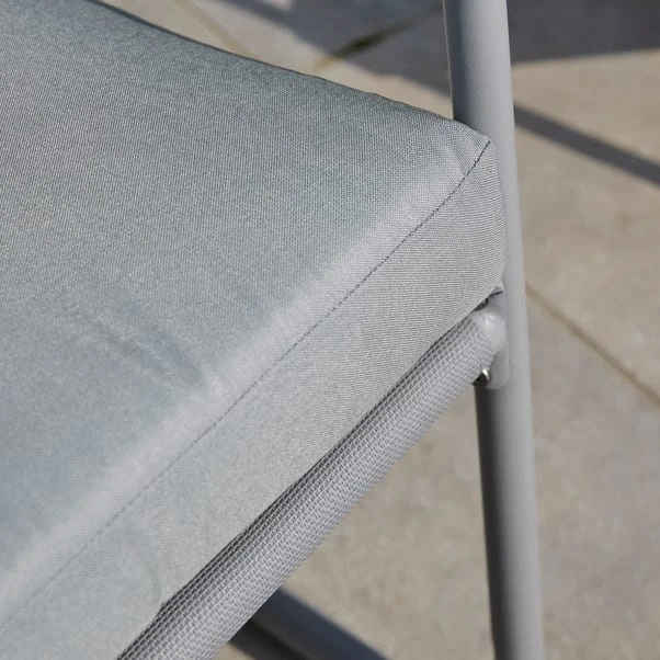 Enhance your outdoor lounge area with this fabulously sleek, conversation set comprising of an upholstered bench, two upholstered chairs and a steel plate table top. This set’s modern and sleek design is perfect for creating a contemporary feel in any garden. Crafted from premium materials, this set is built to withstand life against the elements in any garden.