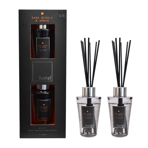 A woody combination of neroli and patchouli, leads into a sensuous blend of amber, sandalwood and sweet spices. Included in this set are two 80ml diffusers. Each vessel comes in a translucent black vessel with a matte silver effect trim and will last up to 7 weeks each.