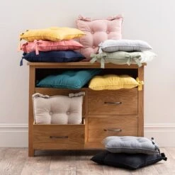 This Isabelle seat pad with sophisticated button detail is crafted from pure cotton with a subtle slub texture and finished with two practical ties to fasten to your chair. Coordinate with matching items from the beautiful Isabelle range, such as napkins and tablecloths in a wide range of sizes and colours.