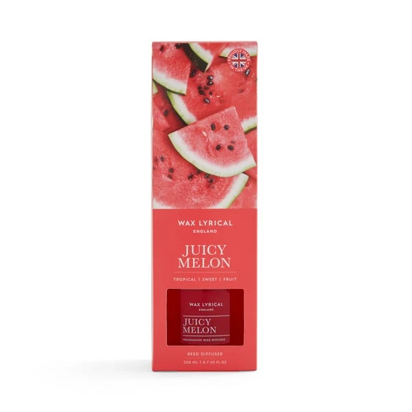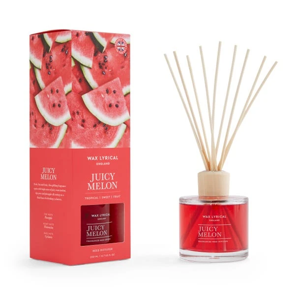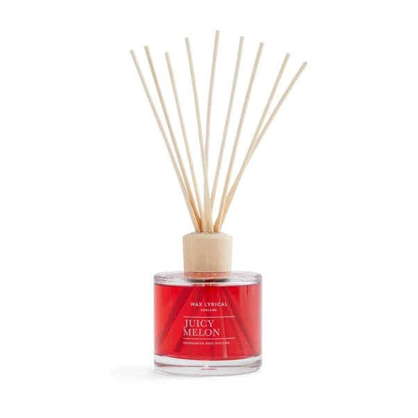 Be transported to a sunny beachside picnic with this Juicy Melon Reed Diffuser. Part of the vibrant Wax Lyrical England collection, this 200ml diffuser is filled with an uplifting scent that opens with bright notes of juicy watermelon, ripe pear and pineapple that rest of a floral base of refreshing cyclamen. Bright pink, this colourful diffuser makes a wonderful addition to the home.