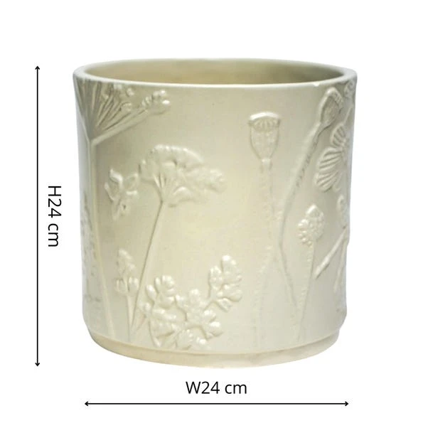 The Kew Stoneware Meadow Planter is a versatile piece, hand-cast in Southern Europe with a reactive glaze that highlights its delicate meadow design. Available in various sizes and colours, this planter subtly enhances any space with its tonal textures.