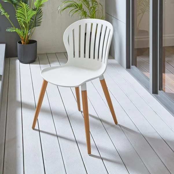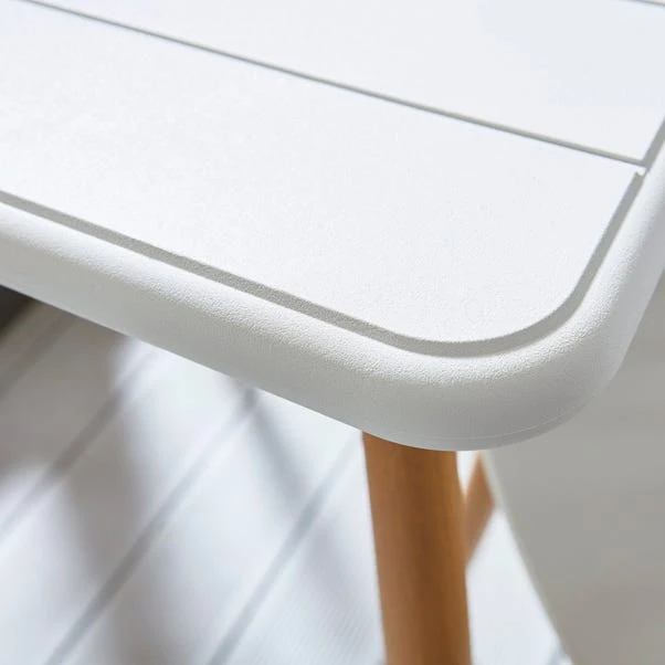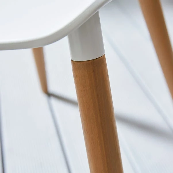 This bistro set features a plastic frame and wooden legs to bring a modern look to your garden. Crafted to withstand varying weather conditions, this bistro set ensures durability and longevity without compromising on style or comfort. The weather-resistant design allows you to leave the set outdoors without worrying about damage from sun, rain, or other environmental factors. With a commitment to low maintenance, this bistro set is ideal for those seeking hassle-free outdoor furniture, providing a stylish and functional space to enjoy al fresco dining or relaxing moments in your garden or patio.