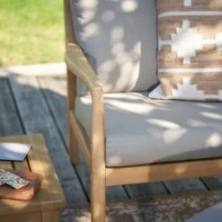 This Malta Bistro Set comfortably seats up to 2 people, providing a solid and robust outdoor dining experience. Crafted from responsibly sourced materials, with water-resistant cushions and fire-retardant features, it combines elegance with ethical craftsmanship.