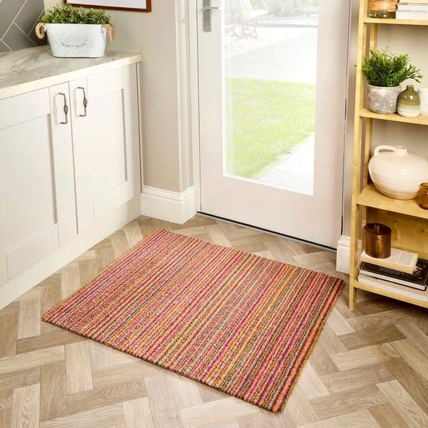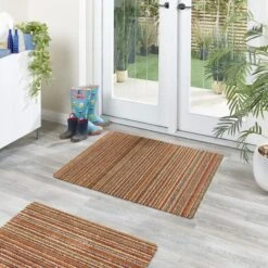 The ultimate blend of functionality and comfort for your home. Featuring an anti-slip backing, this Marvel Striped Printed Utility Mat ensures stability and safety in high-traffic areas. Its soft, luxurious pile provides a welcoming feel underfoot, while being fully machine washable for easy cleaning and maintenance. This doormat is available in a choice of sizes for you to choose from.