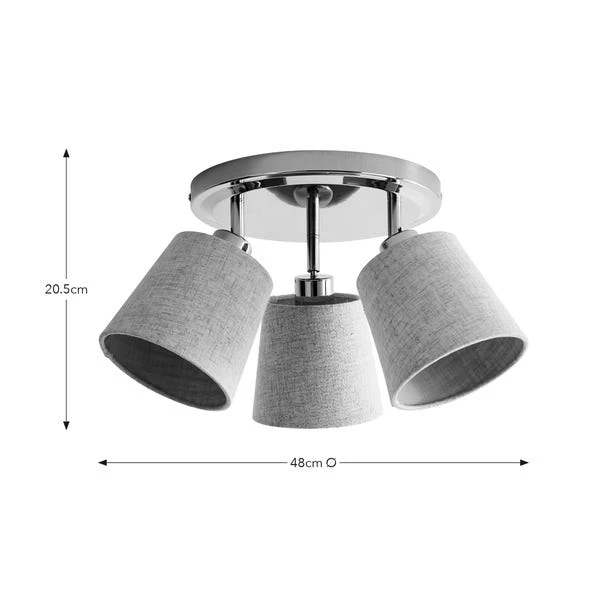 Brighten your home with the Preston 3 Light Adjustable Spotlight. Its textured-effect design adds depth and dimension to any room. With adjustable shade heads, you can customise your lighting experience effortlessly. Dimmable when used with a compatible bulb and switch, it offers flexibility and ambience for your dining room or living room.