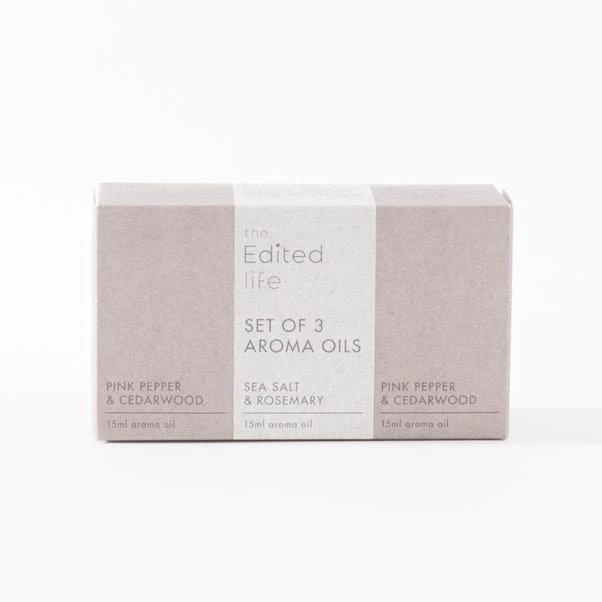 Breathe new life into your pot pourri or indulge in an invigorating oil burner with this set of 3 refresher oils. Beautifully presented in a giftable box, these oils are ideal for bringing an uplifting fragrance into your home. Contains one Sea Salt & Rosemary: a coastal blend of fresh sea salt, calming eucalyptus and floral notes with a base of sandalwood and musk, and two Pink Pepper & Cedarwood: fresh bergamot, tangy rhubarb and peppercorn beautifully combined with soft balsamic and tobacco notes, resting on a crystalline amber, cedarwood and patchouli base.