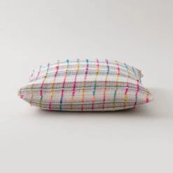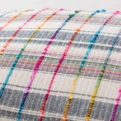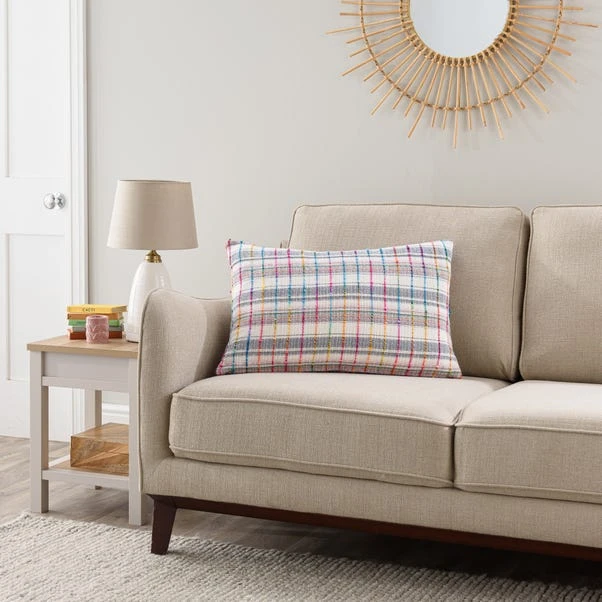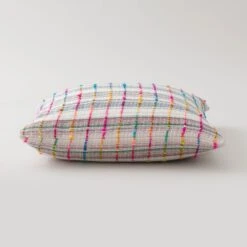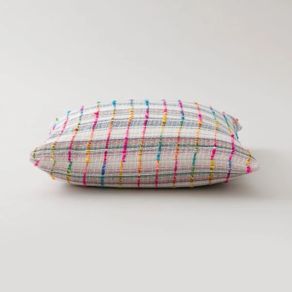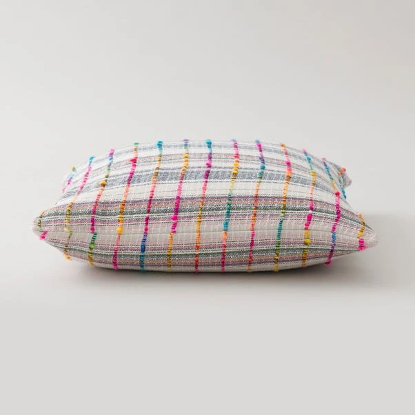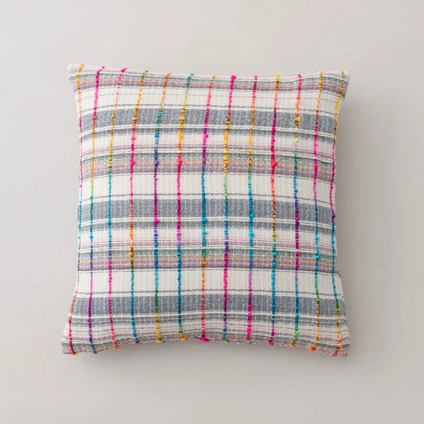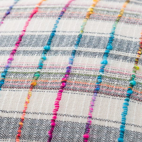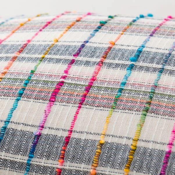 Our Space dyed Rainbow Check cushion is made from colourful textured yarns and handwoven to create a unique design. The face is crafted entirely from recycled fibres and the reverse is woven from 100% cotton. The cushion comes complete with a plump inner filled with recycled polyester fibre.