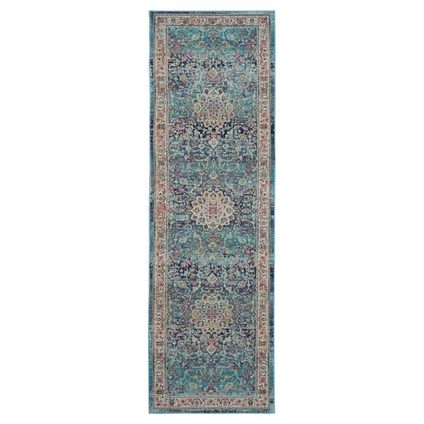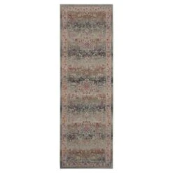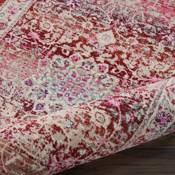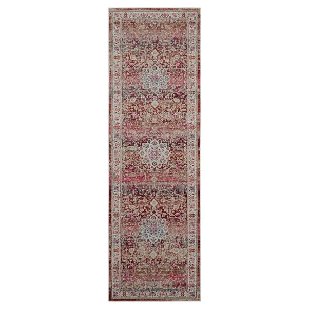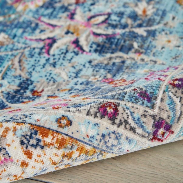 The deeply distressed ultra-low-cut pile (5mm) features a classic multi-coloured palette for the look and feel of a Persian heirloom rug.