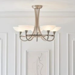 Boasting a classic modern design, this light is ideal for adding a touch of warmth and style to any room. With a plated metal finish and matt white glass shades, this light is not only stylish but modern. This light is dimmable and is perfect for use with G9 LED bulbs.