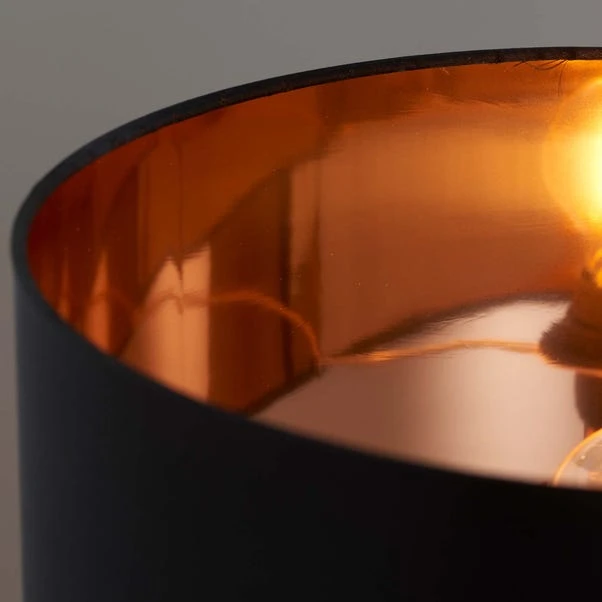 Perfect for bringing a sleek and glamorous touch to any space, the Vogue Courtland table lamp features a high shine, copper effect base, paired with a beautiful faux silk shade with a reflective copper inner. This piece is fitted with an inline switch and suitable for use with LED lamps.