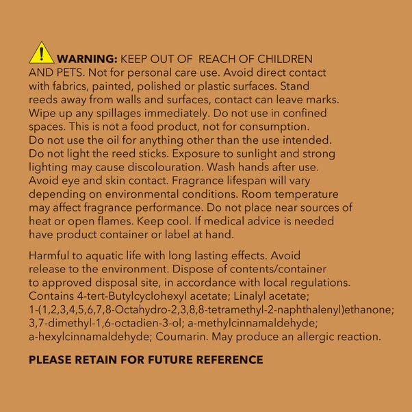 Keep your space filled with a warm, inviting fragrance with this diffuser refill, designed to last up to 20 weeks. The rich, soothing scent of golden amber, cedarwood, and sandalwood is perfectly balanced with bright notes of bergamot and mandarin, creating a comforting atmosphere in any room. Ideal for topping up empty diffuser bottles, it ensures a continuous, long-lasting aroma, and the rich scent adds a luxurious warmth, making it perfect for living rooms, bedrooms or cosy corners. A simple yet effective way to refresh your home with a delightful fragrance.