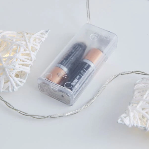 Made from wicker, this beautiful string of hearts lights will add a cute and loving feel to your home. The modern and natural colourway mixed with the fun heart shape makes these battery-operated, white-bulb lights perfect for your home.