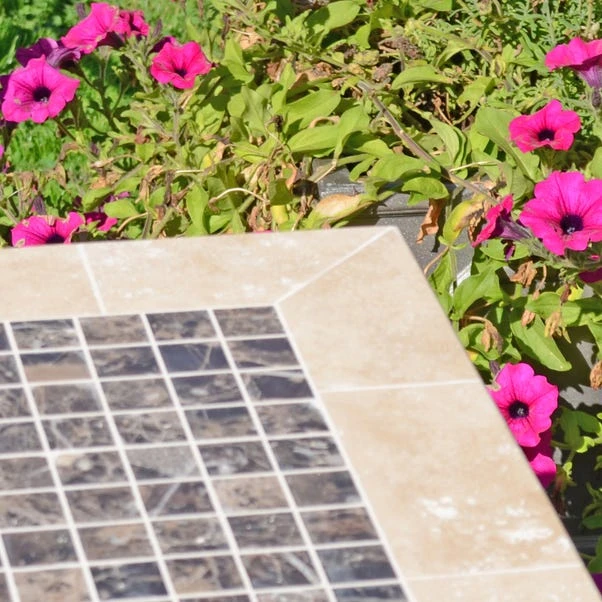 Add a classic look into your garden with this Wilmington dining table. The stone stop table has a gorgeous mosaic design that has been hand laid. As the table is crafted from marble stone, it is heavy and strong.