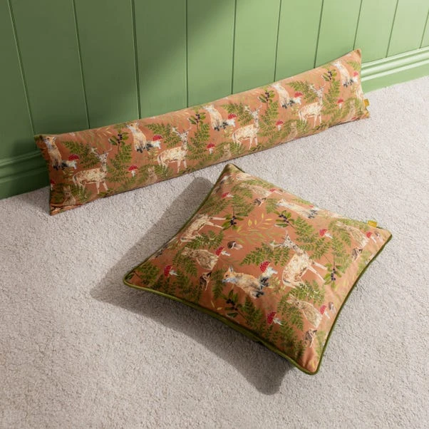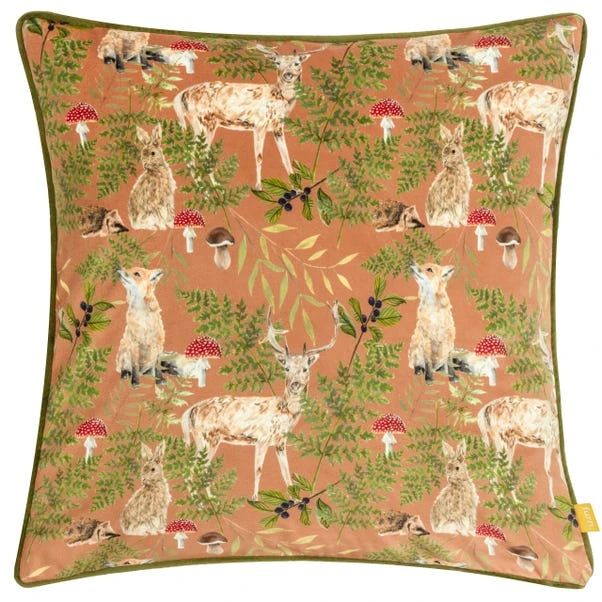 Featuring a scandi inspired woodland design on a soft velvet background, this square cushion is complete with a plain soft velvet background with a woodlands inspired, piped edge and hidden zip closure.