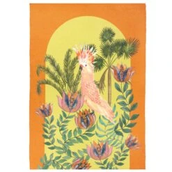 Add a tropical paradise to your space with the Wylder Cockatoo Rug, featuring a stunning hand-painted cockatoo surrounded by lush jungle foliage against a vivid sunset-orange background. Digitally printed for high-definition detail, this rug is lightweight, foldable, and machine washable, with UV-resistant, weatherproof materials that make it perfect for both indoor and outdoor use.