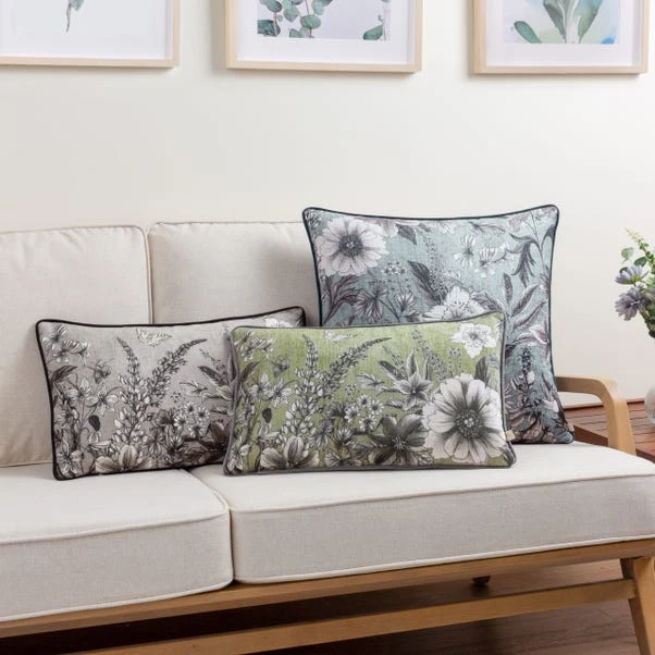 Celebrate nature with the Wylder Harlington Botany Cushion Cover, featuring a hand-painted monoprint design of classic florals with a textured appearance. The soft velvet reverse, piped trim, and hidden zip fastening complete this elegant and durable cushion cover.