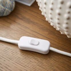 Crafted from ceramic material this table lamp features an urchin embossed design for a decorative, rippled effect across its surface while the cream coloured shade is made from cotton for a soft look and feel, ideal for any home.