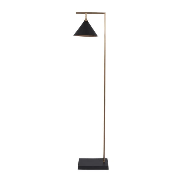 - Sophisticated floor lamp with matt black and antique brass finish.