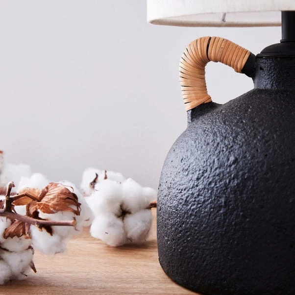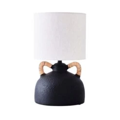 Illuminate your surroundings with the Zuri Traditional Ceramic Handle Table Lamp. Its plain handcrafted design, coupled with two unique handles, boasts an unusual shape that catches the eye. The cream/white polyester shade complements the lamp’s aesthetic, producing a wonderfully bright glow. Featuring an ES/E27 Edison Screw cap type and an in-line switch, this lamp is a perfect blend of form and function—a distinctive statement piece that effortlessly fills your room with radiant light.